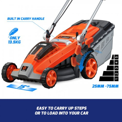 Reglaj central al latimii de taiere ( in 5 trepte) – este un mare avantaj fata de masinile de tuns gazonul traditionale acolo unde reglajul de taiere se face independent pe fiecare roata. Cu acest sistem setarea inaltimii de taiere se face foarte rapid si exact.