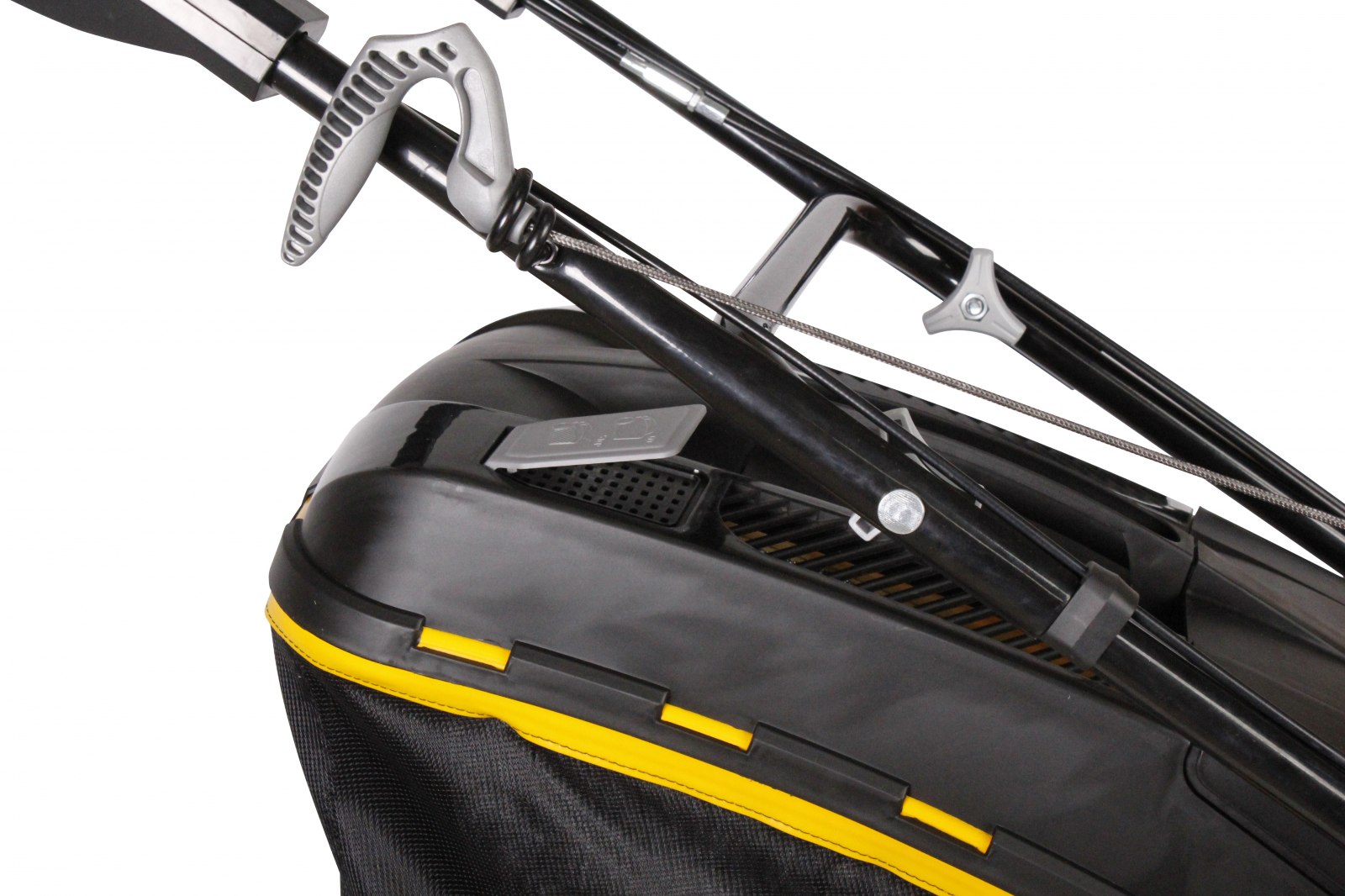Inaltimea de taiere se regleaza central, intr-un singur loc pentru toata masina, fata de cazul in care ar trebui sa reglati inaltimea pentru fiecare roata in parte.